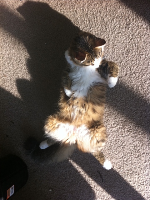 You could sprinkle some ground almonds on top to compliment the orange-y flavour 🙂