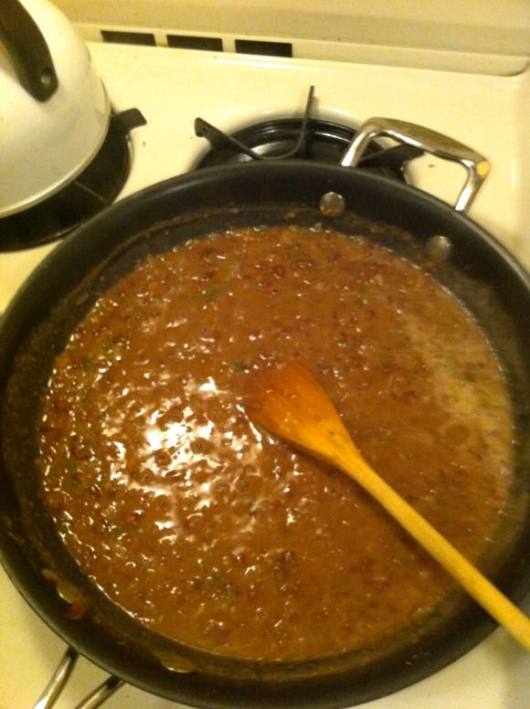 Loads of people I’ve met and blogs I’ve read tell me to buy a can of re-fried beans at the store when I am making burritos or quesadillas or whatever else I might be making that call for re-fried beans. Not being Mexican myself, and never having researched the issue, I assumed it must be difficult to make good re-fried beans at home, that there must be some secret to it.