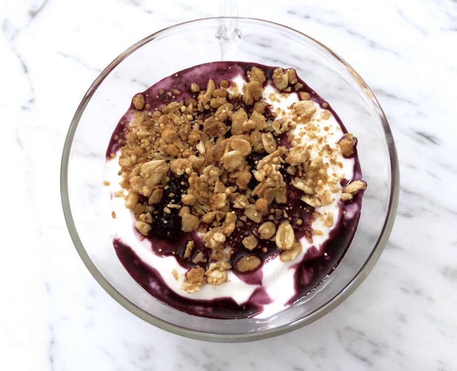 1-3 tsp granola (you can go here, if you want to make your own (you can skip the coconut if you don’t like the idea of blueberries with coconut))