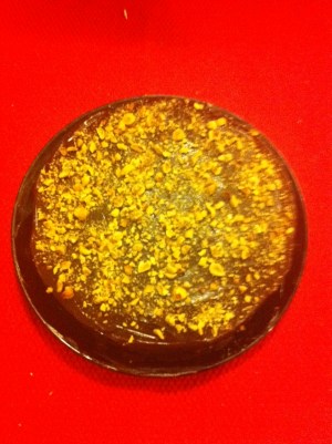 Preparing the hazelnuts: Toast the hazelnuts in the oven at 375 farenheit (that’s 180 celsius) for about 10 minutes, tossing the nuts once during this time. Let them cool and then place them in a tea-towel and rub them against each other until they lose their skins. Then place them in a mortar and pestle and coarsely grind them. I suggested a mortar and pestle rather than a dry-grinder because this way you can make sure you break up all the nuts without reducing most of the nuts to a powder.