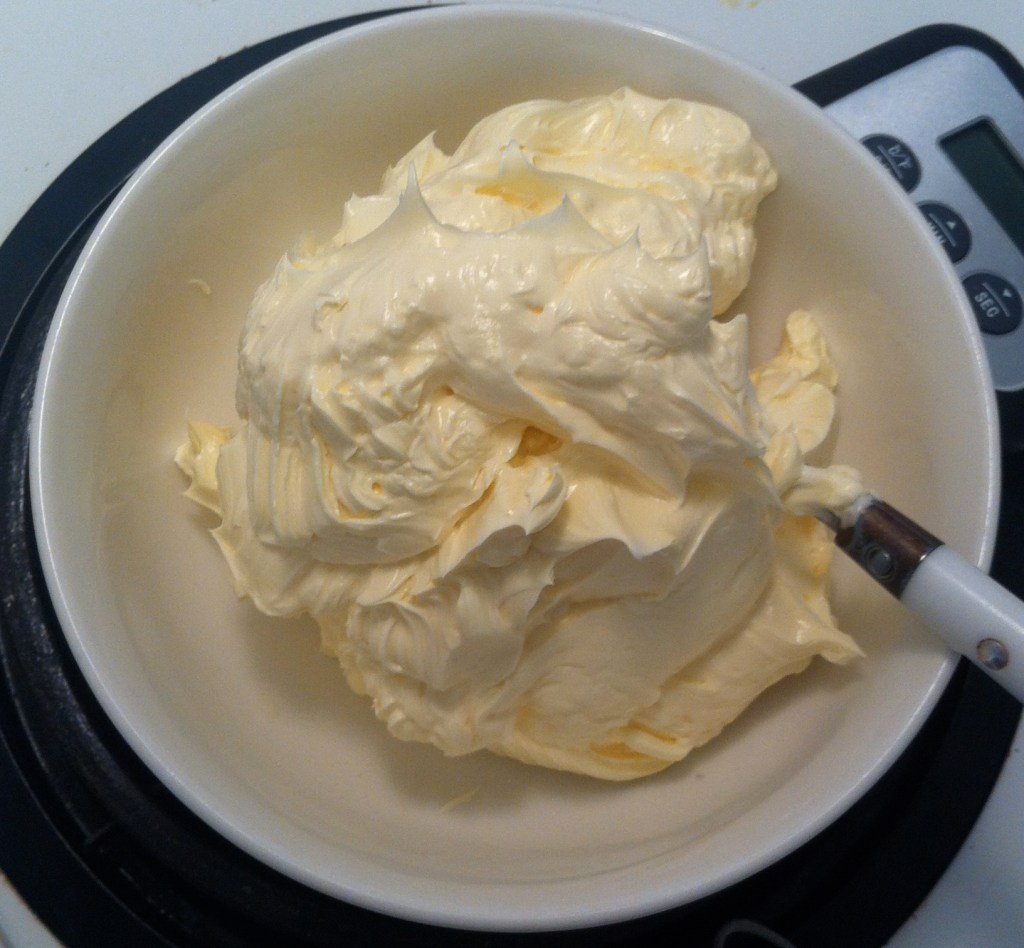 1. Cream the butter and sugar (i.e. beat them together in a stand mixer or in a large bowl with a handheld mixer/eggbeater or whisk) until they form a creamy, thick, pale yellow mixture.