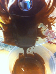 - Sieve the dry ingredients into a second bowl (flour, cocoa, baking powder, and salt).